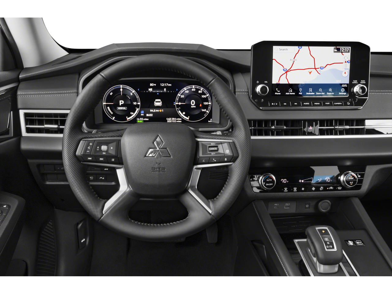 - Radio: AM/FM 9" Smartphone Link Display Audio -inc: navigation system, Apple CarPlay and Android Auto, SiriusXM satellite radio w/90 day SXM All Access and SXM Traffic and Travel Link subscription, HD Radio, Mitsubishi Connect w/safeguard and remote services and 24 month free trial (mobile app enrollment required), steering wheel audio and phone controls w/voice recognition, front USB-C and USB-A port, 6 speakers and Bluetooth® wireless technology